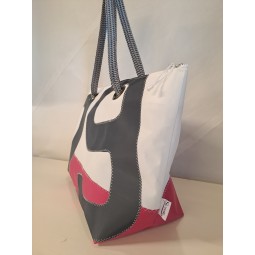 Pochette bandoulière en voile de bateau et toile bleu turquoise.