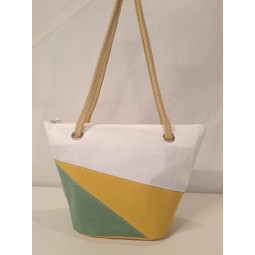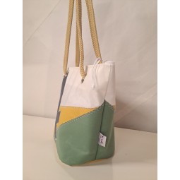 Cabas en voile de bateau et toile vert olive. Choix du cordage...