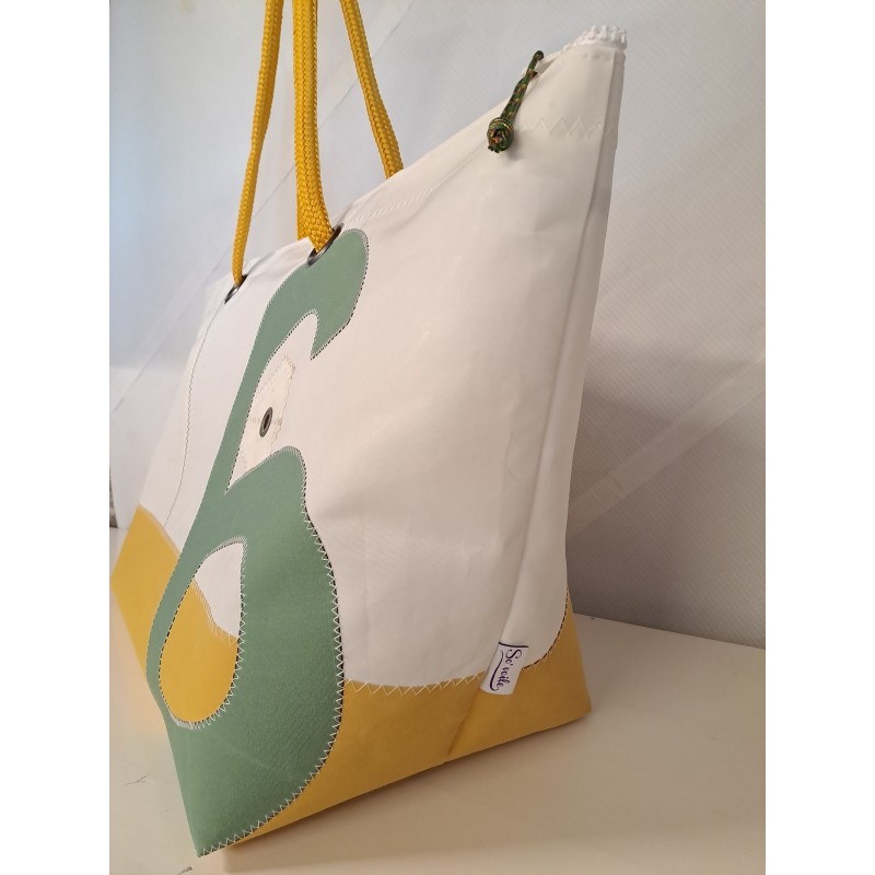 Cabas en voile de bateau recyclée et toile acrylique résistante jaune moutarde.