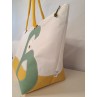 Cabas en voile recyclée jaune moutarde et chiffre vert olive.