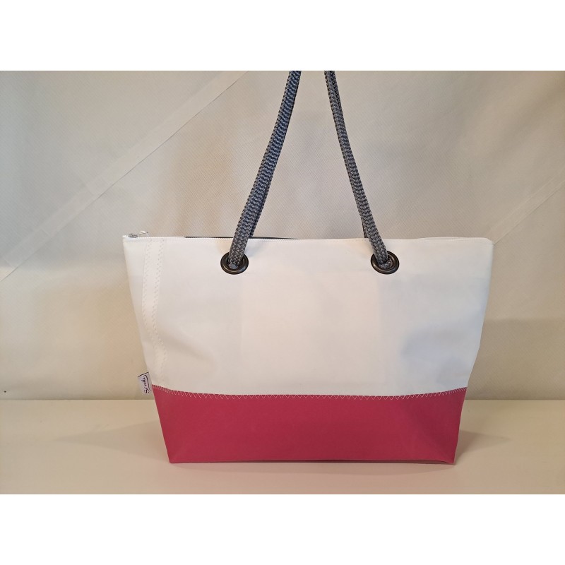 Cabas en voile de bateau recyclé et toile acrylique très résistante rose.