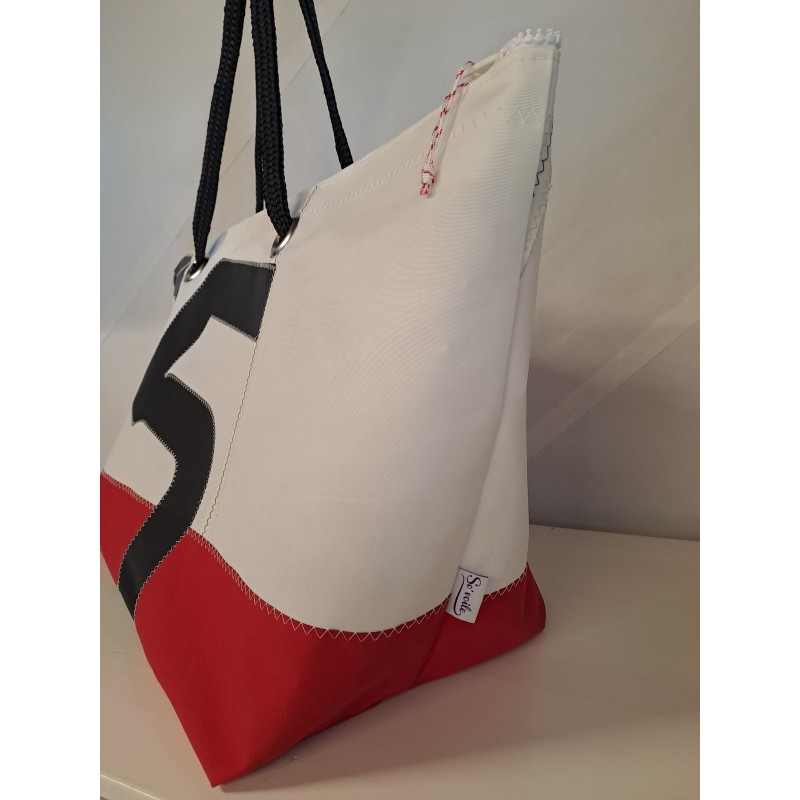 Cabas en voile de bateau recyclée et toile acrylique résistante rouge.