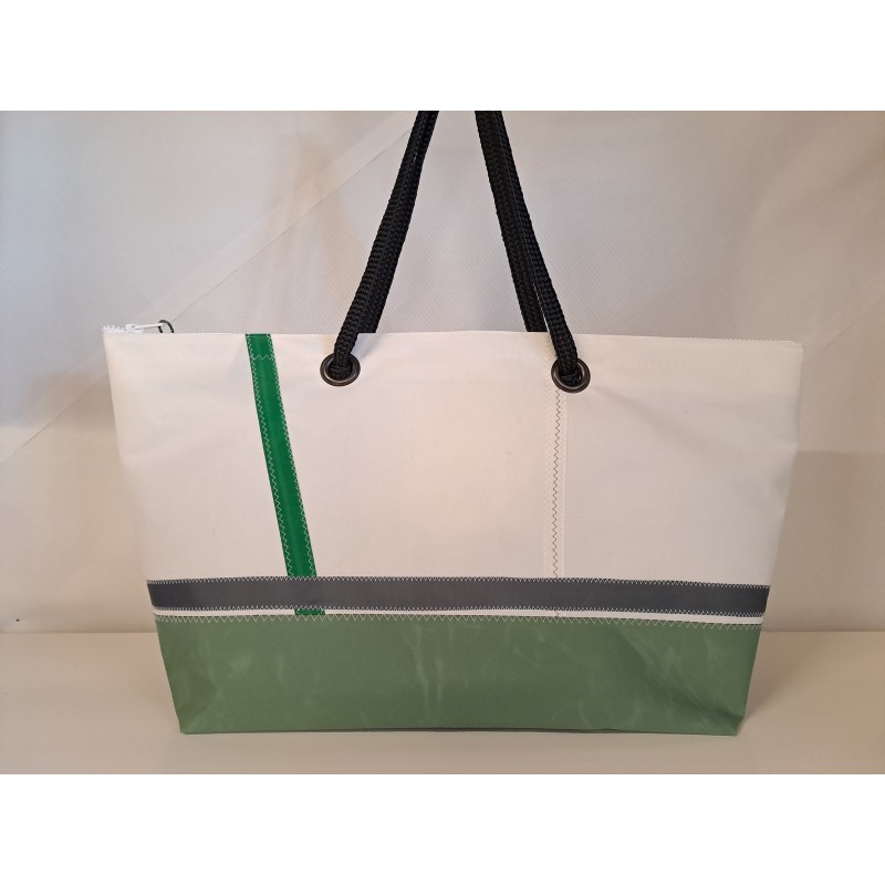 Cabas en voile de bateau recyclée et toile acrylique résistante vert olive.