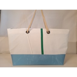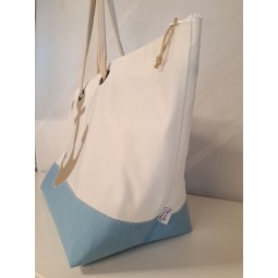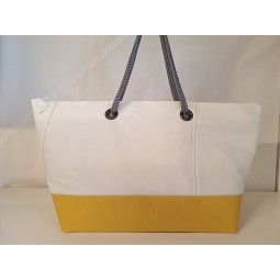 Cabas en voile de bateau recyclée et toile acrylique résistante rose.