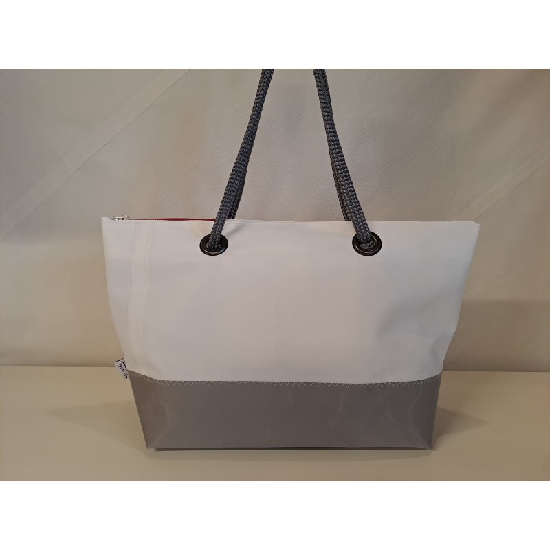 Cabas en voile de bateau recyclée et toile acrylique très résistante gris.