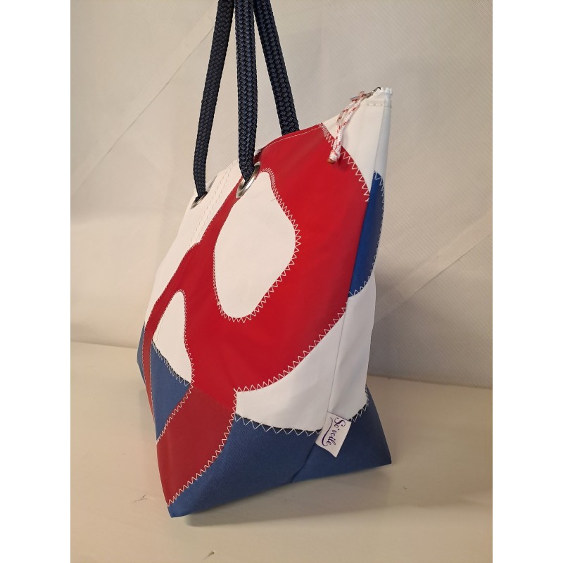 Cabas en voile de bateau recyclé et toile bleu indigo.