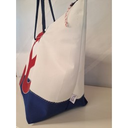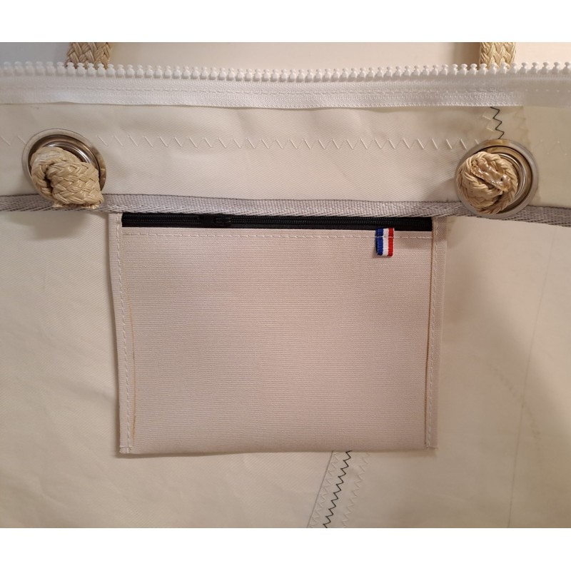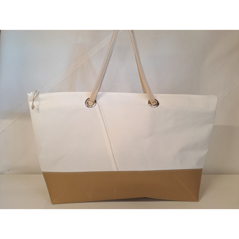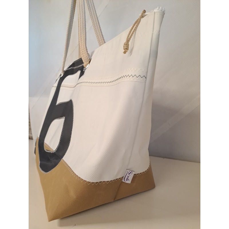 Cabas en voile de bateau recyclée et toile acrylique résistante camel.