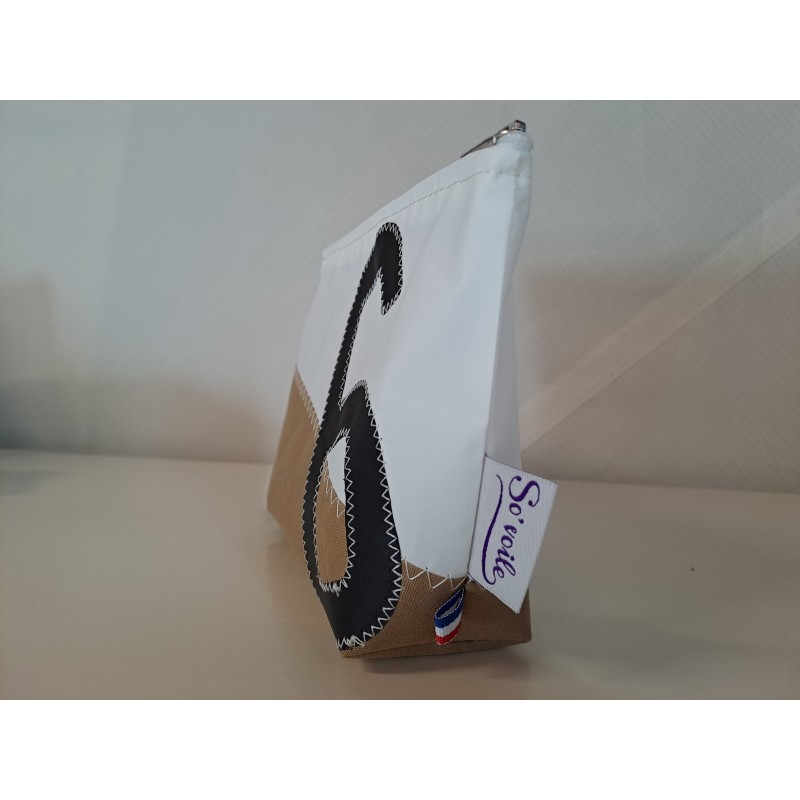 Pochette en voile de bateau et toile camel, chiffre noir.