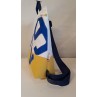 Sac à dos en voile de bateau jaune moutarde, chiffre bleu roi.