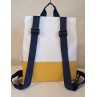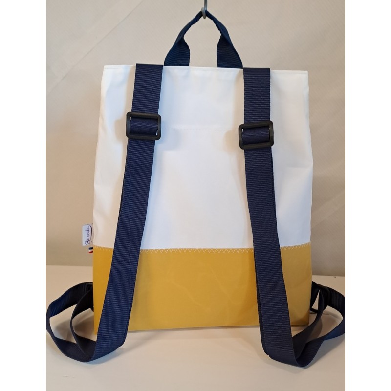 Sac à dos en voile de bateau recyclée et toile acrylique résistante jaune moutarde.