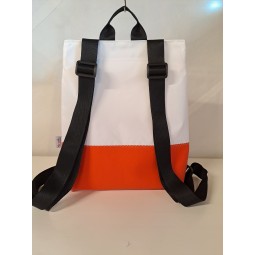 Sac à dos en voile de bateau, bleu marine, chiffre orange.