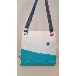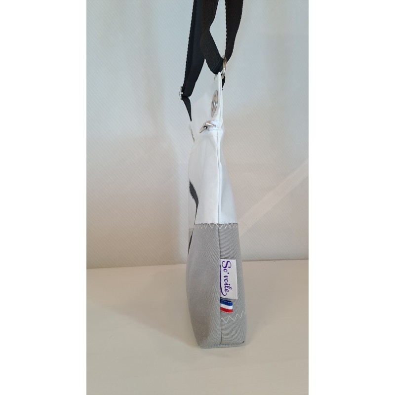 Pochette bandoulière en voile de bateau recyclé et toile résistante gris.