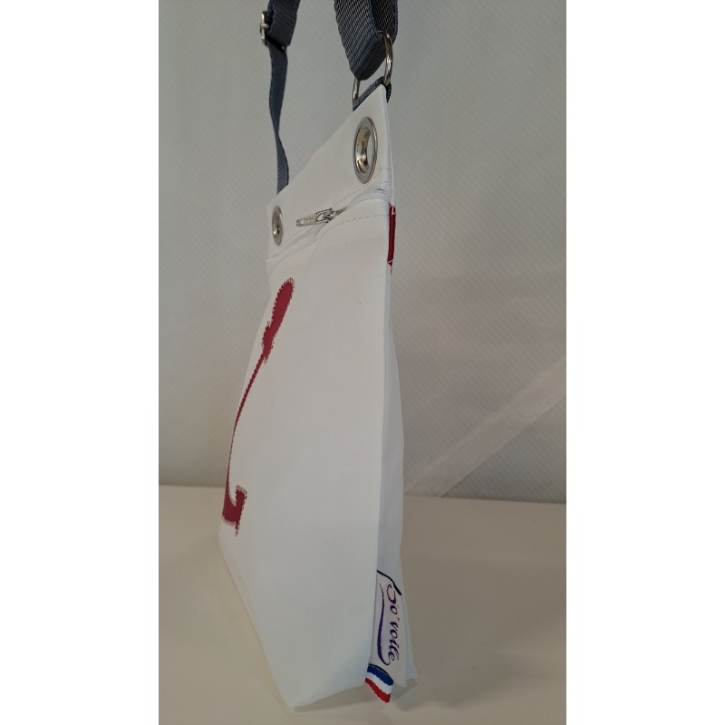 Pochette bandoulière en voile de bateau recyclé.