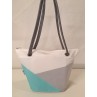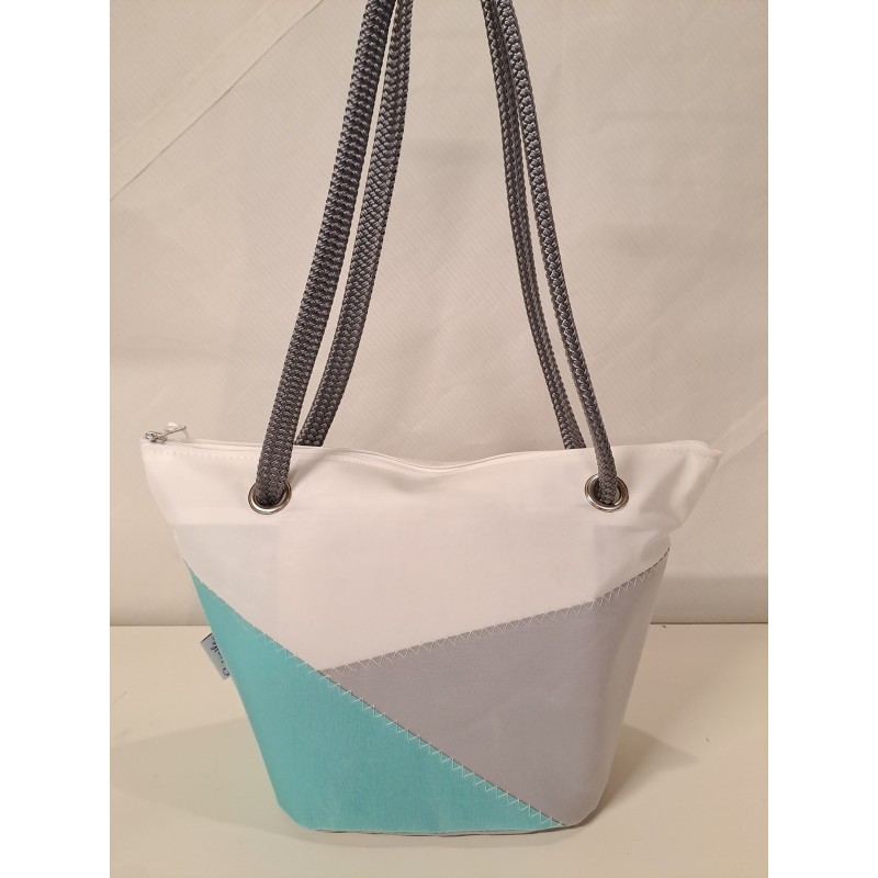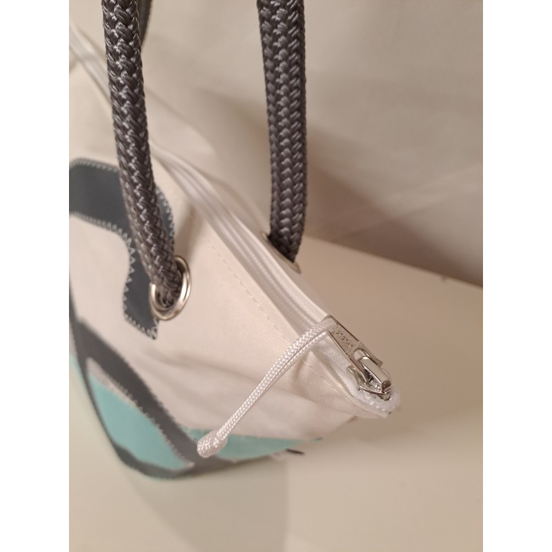 Sac à mains en voile de bateau recyclée et toile acrylique résistante turquoise et gris clair.