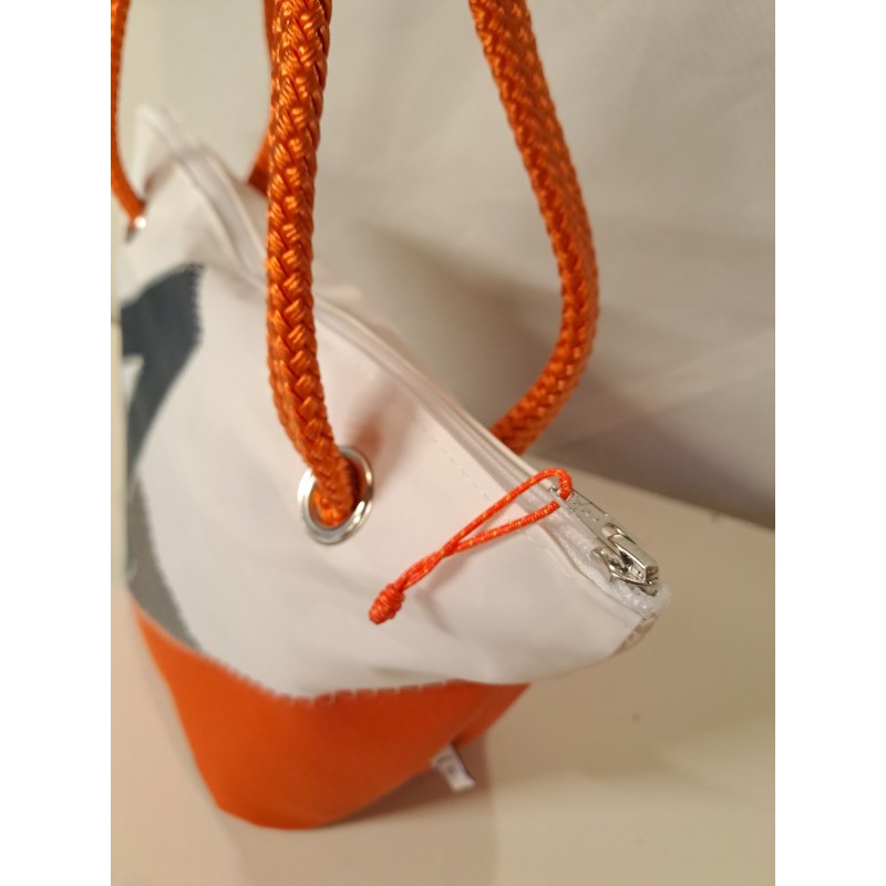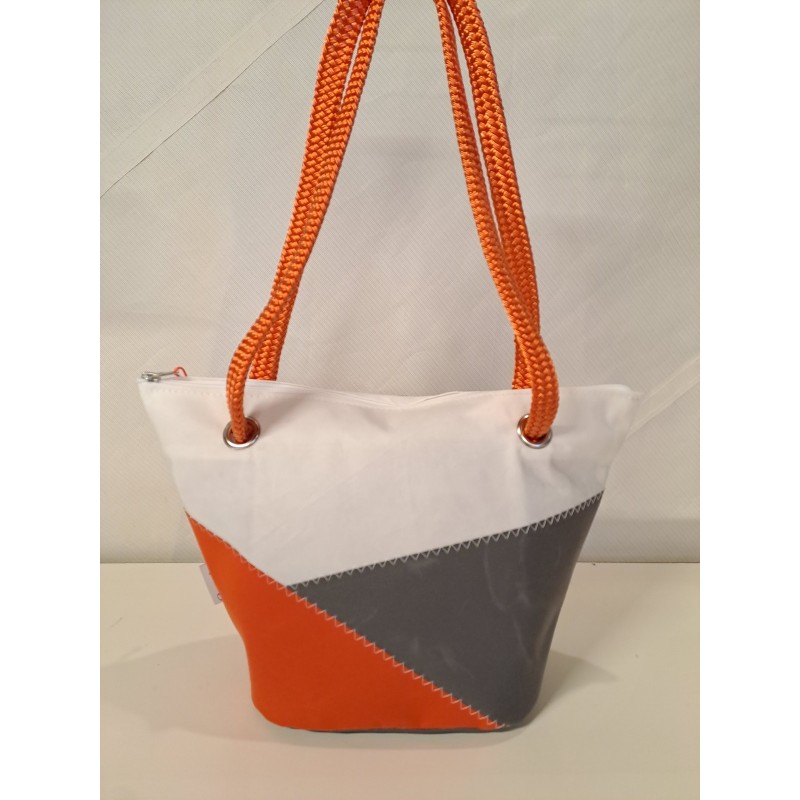 Sac à mains en voile de bateau recyclée et toile acrylique résistante gris et orange .
