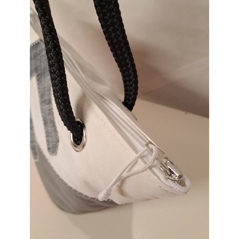 .Sac à mains en voile de bateau recyclée et toile acrylique résistante rose fuchia et gris.