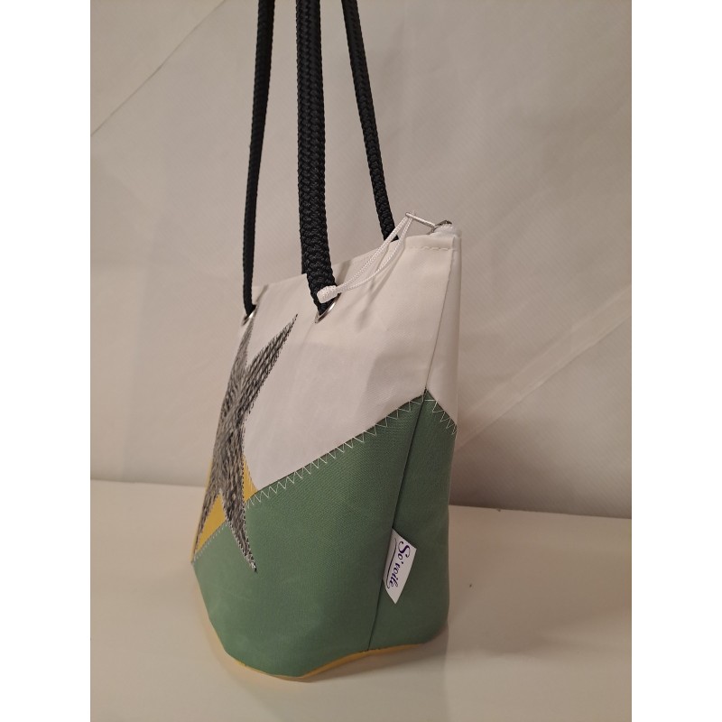 Sac à mains en voile, jaune moutarde et vert olive, étoile en voile carbone.